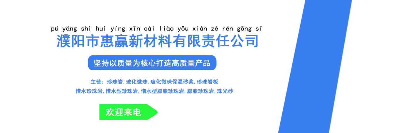 濮陽市惠贏新材料有限責任公司是一家專業生產保溫材料的廠家,位于范縣王樓鎮工業區,專業生產珍珠巖、珍珠巖保溫板、?;⒅榈缺亟ú?,主要用于外墻保溫、屋面保溫、園藝等領域,產品暢銷國內外,深受客戶一致好評。我們擁有優秀的產品和服務,在成立以來都以誠信對待客戶!      公司擁有各類專業人才,技術人員50人,運輸40人,專業的十多輛運輸車輛。產品銷售網絡遍及國內20多個省市,十幾年來,通過公司的不懈努力和誠信經營理念,產品質量可靠,價格合理,深受廣大客戶認可和好評!      我公司本著以客戶為本,客觀實際,創新發展的原則,在追求完美極致的道路上努力打造行業新標準,我公司憑借卓越的產品質量、完善的服務標準、良好的口碑信譽、竭誠歡迎廣大客戶前來洽談業務!...